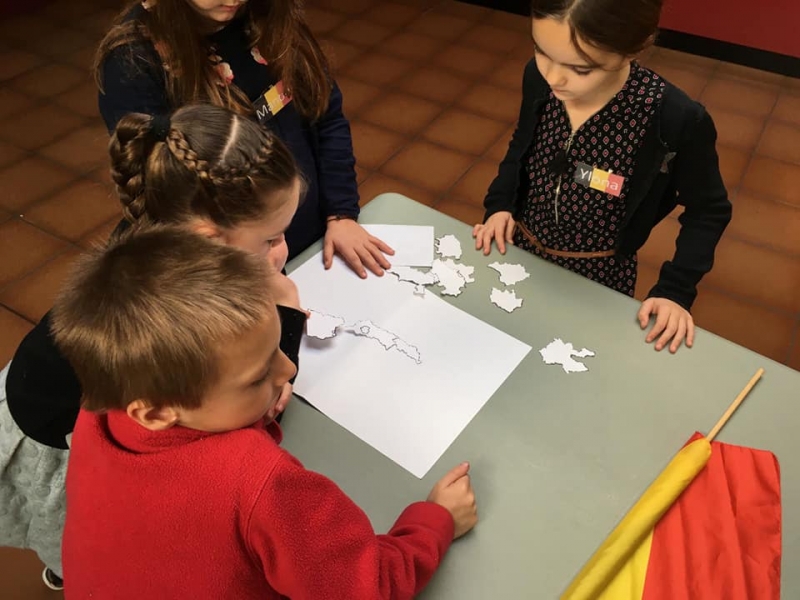Pour la dernière leçon de néerlandais de l'année dans le cadre du microprojet TIL sur l'apprentissage des langues, les enfants apprennent à danser sur un air de folklore belge. On construit la carte du pays façon puzzle, on mange des gaufres et on fabrique des brochettes de fruits !